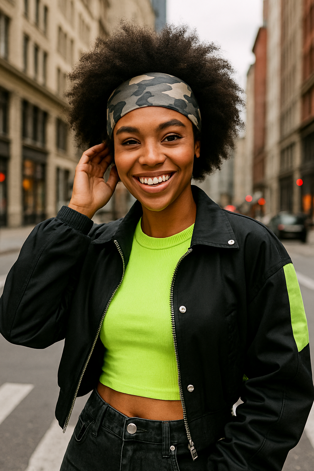 One size fits most design. Machine washable & made from a buttery-soft, ultra stretchy, poly-knit blend. Versatile 3-in-1 twist style provides multiple ways to wear. Double-layer fabric is sweat absorbent and non-slip. Perfect for your best workout, your longest shift or your cutest play date. Handmade in Washington State. Sizes: Women: 3.5" at widest part. Child (ages 4-10): 3" at widest part and smaller/tighter than the women’s size.