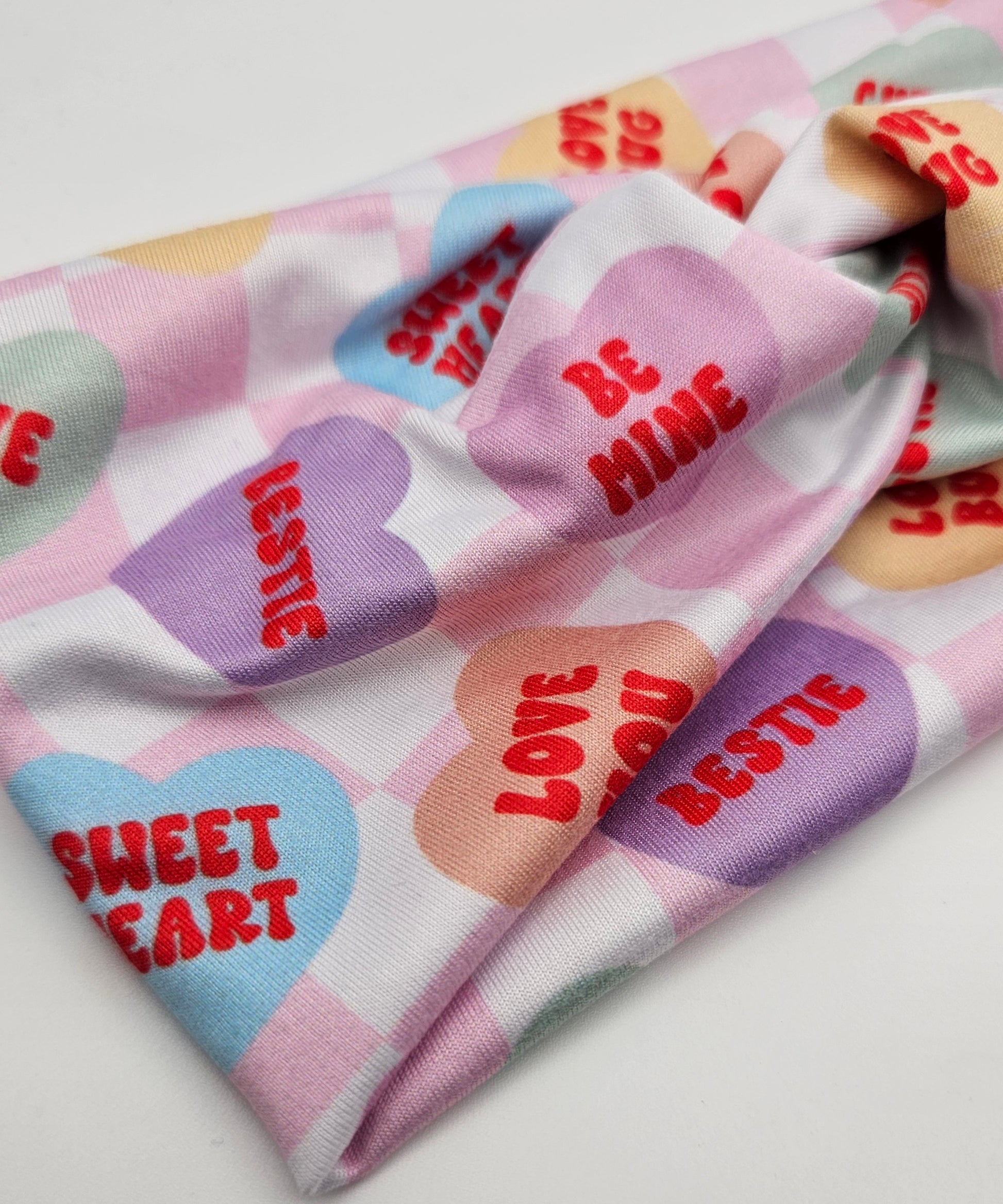 One size fits most design. Machine washable & made from a buttery-soft, ultra stretchy, poly-knit blend. Versatile 3-in-1 twist style provides multiple ways to wear. Double-layer fabric is sweat absorbent and non-slip. Perfect for your best workout, your longest shift or your cutest play date. Handmade in Washington State. Sizes: Women: 3.5" at widest part. Child (ages 4-10): 3" at widest part and smaller/tighter than the women’s size.