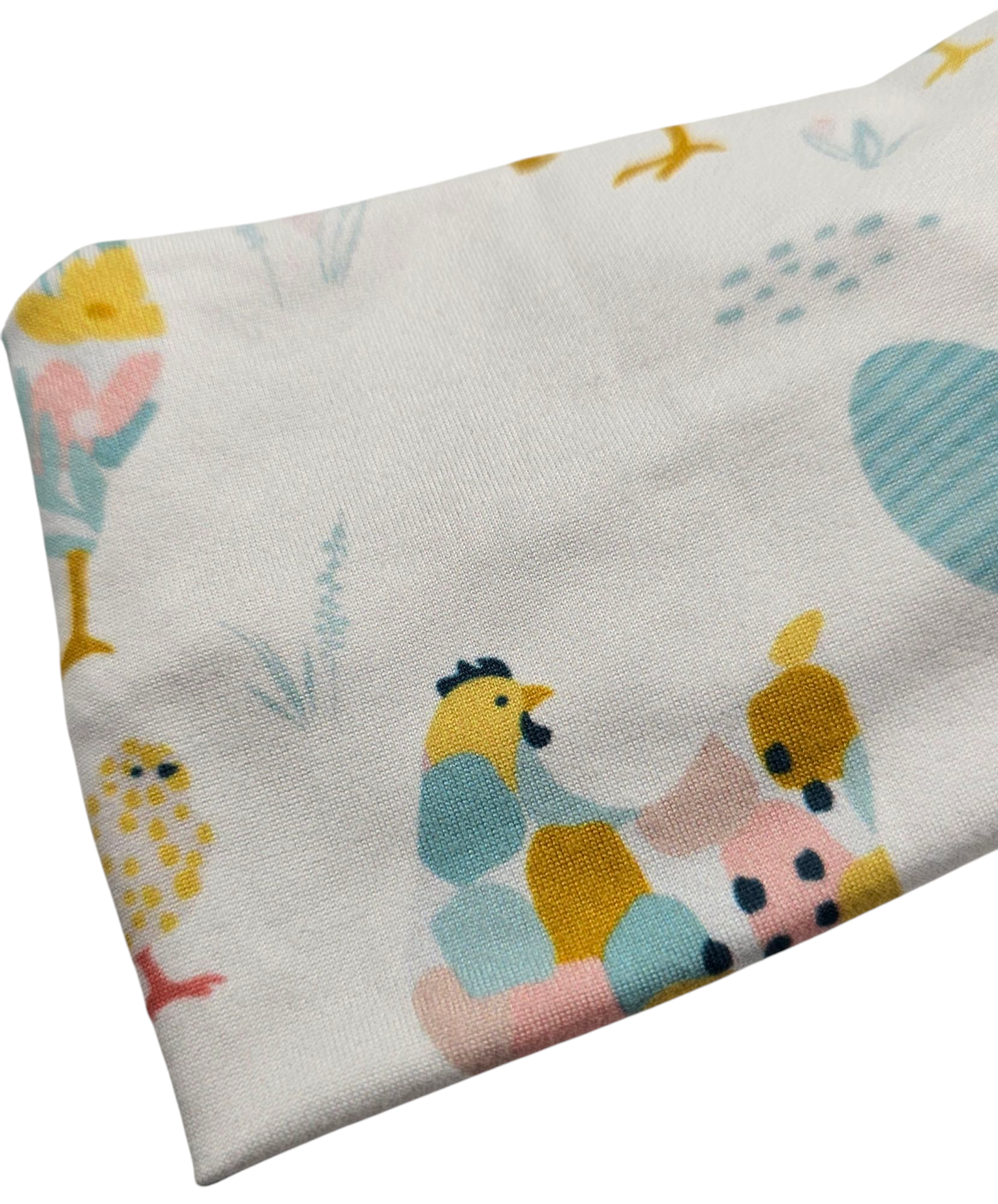 One size fits most design. Machine washable & made from a buttery-soft, ultra stretchy, poly-knit blend. Versatile 3-in-1 twist style provides multiple ways to wear. Double-layer fabric is sweat absorbent and non-slip. Perfect for your best workout, your longest shift or your cutest play date. Handmade in Washington State. Sizes: Women: 3.5" at widest part. Child (ages 4-10): 3" at widest part and smaller/tighter than the women’s size.