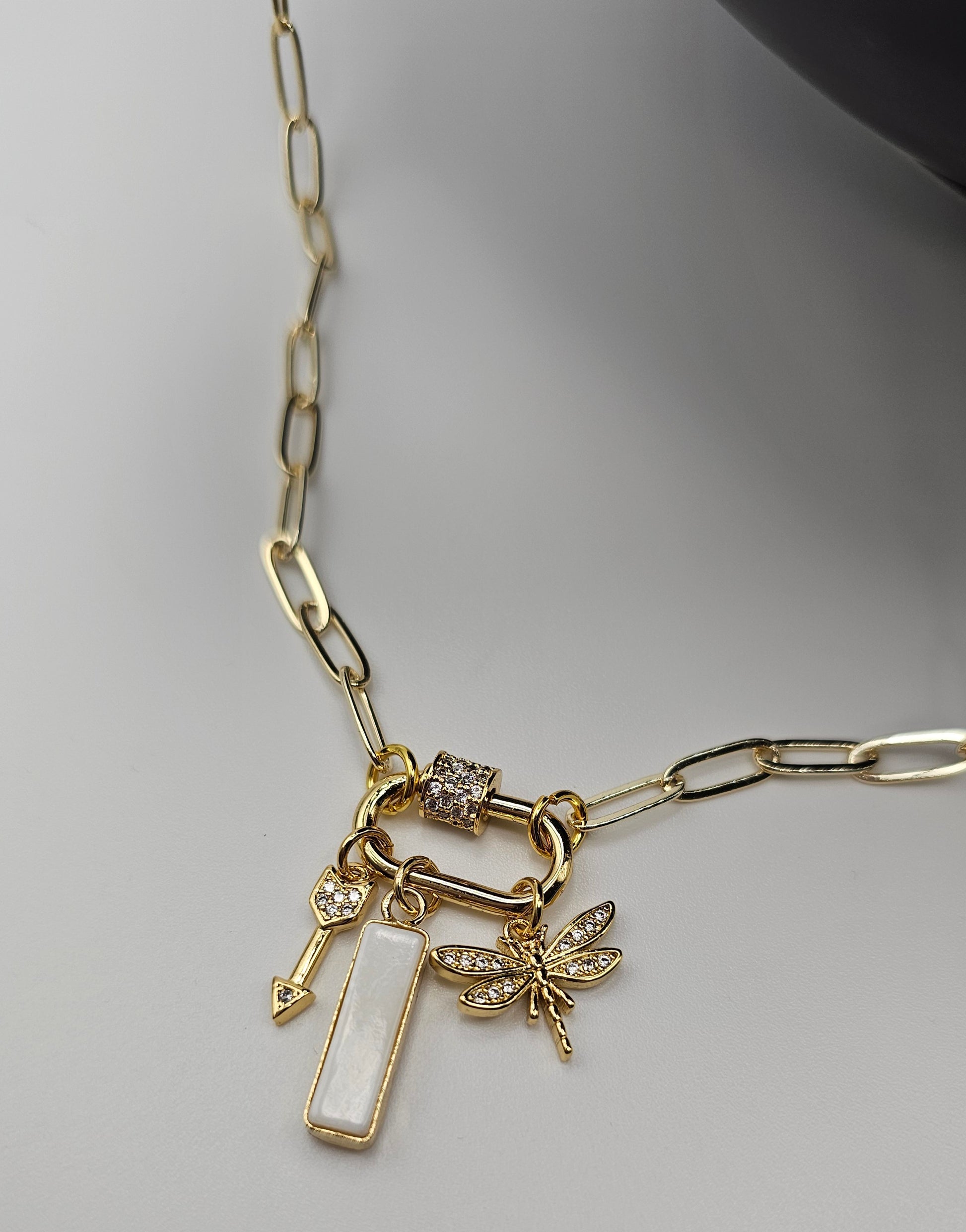 The Dragonfly: A delicate, gold-toned dragonfly charm, often symbolizing change, transformation, and self-realization.