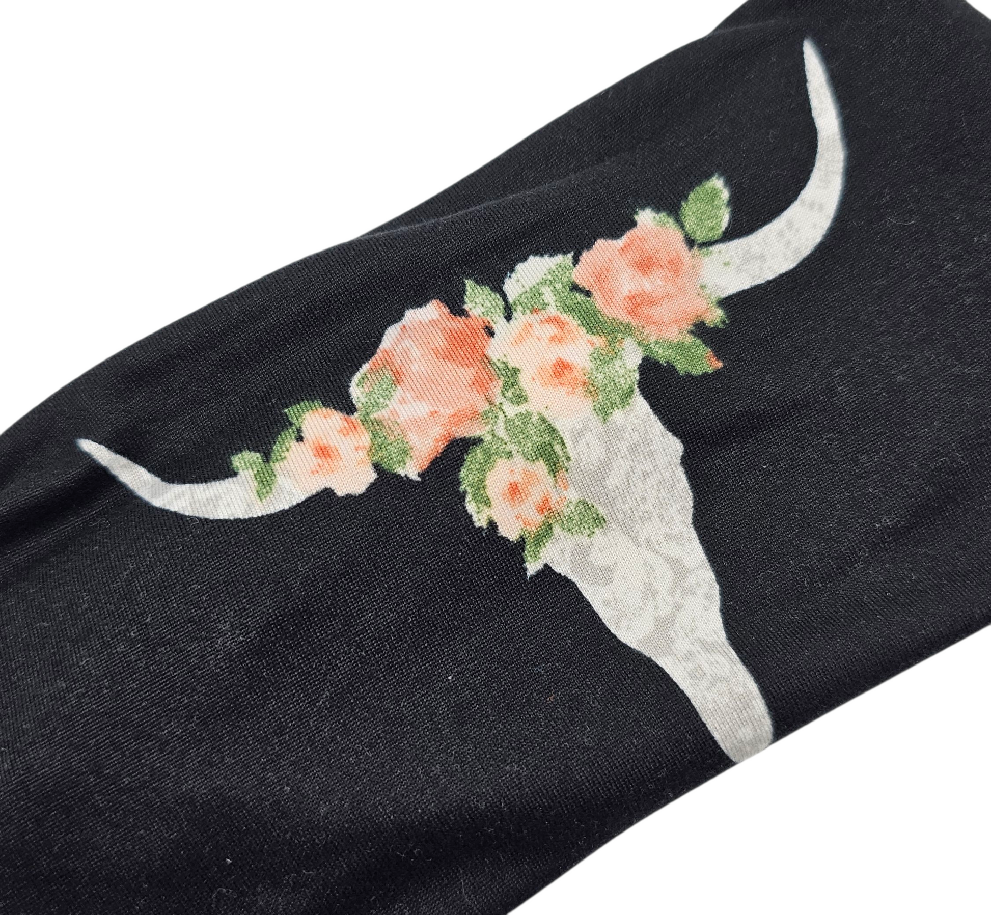 Floral Bull Skulls on Black Headband
