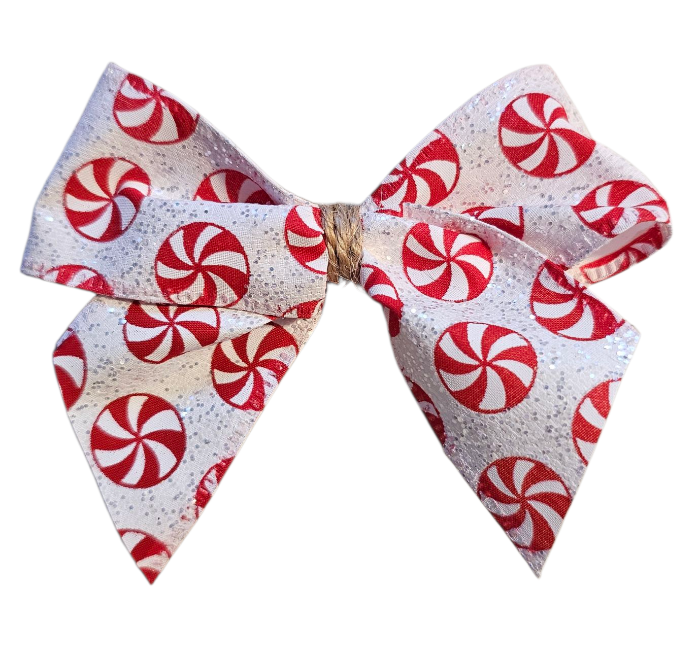 SIZE AND STYLE: Compact 4 inch diameter circular design in traditional Christmas colors of red and green with white background.